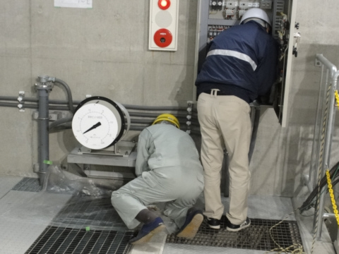 発電用排水ピットの水位計に千曲エンジニアリング製の親子ドラム形フロート式水位計が採用されました。
