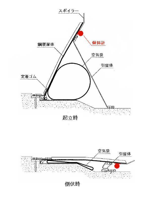 鋼製起伏堰(ゴム袋体支持式)(SR堰)の扉体の角度(高さ)を計測する堰高検出装置として利用します。