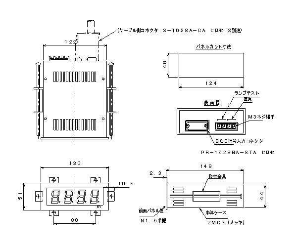 本表示器はオープンコレクタ、または無電圧接点のBCD信号を受け、デジタル表示します。