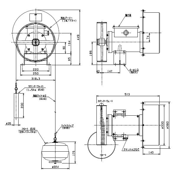 | フロート仕様 | SUS304 φ224 質量3.2kg | |